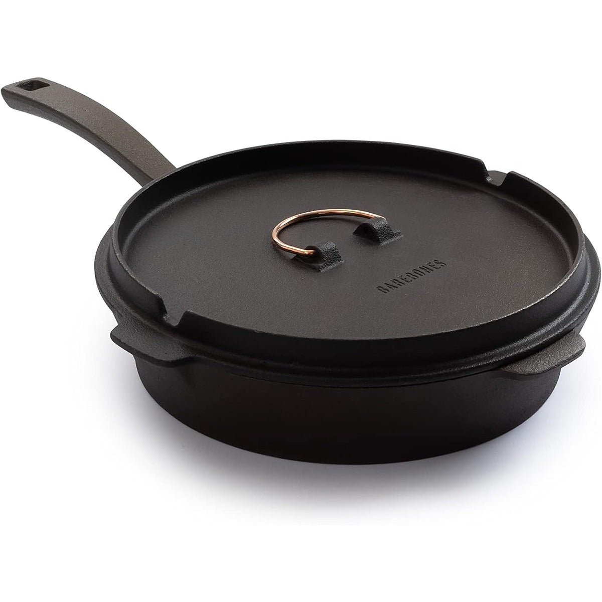 Meet the All-In-One Cast Iron Skillet Collection. This deluxe cast iron skillet is inspired by Japanese cookware and thoughtfully designed for open fire use, making it the perfect addition to any cooking enthusiast"s collection. Included Dutch oven style lid, circular polished interior, better heat distribution, extended handle, and copper accents make this a dream to cook with--from camp to kitchen. Pre-seasoned with organic sunflower oil and ready to use right out of the box.
