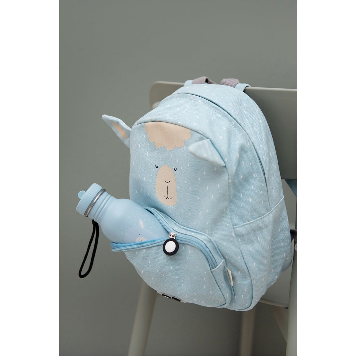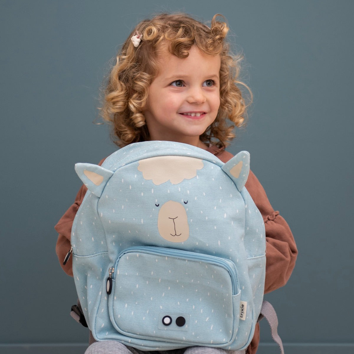 With this cute backpack your child is completely ready for any adventure or first trip to school! The backpack has adjustable and padded shoulder straps and a short handle at the top to easily hold and hang it everywhere you go. The chest strap prevents the shoulder straps from falling down. The backpack has a big compartment and a little front pocket, where you can nicely store a little snack or so. The main and front pocket have a zipper that allows children to easily open and close the backpack themselves. In order not to loose your traveling companion, a name tag is provided on the inside of the bag. Furthermore, the backpack is water repellent and can be washed in the washing machine in a gentle rinse. But be informed that the more you wash the bag, the less water repellent it will get.