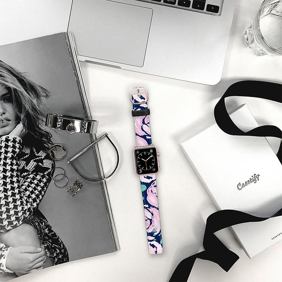 Casetify CASETIFY Apple Watch Band Leather All Series 42mm Aluminum Gold Frame Pink Peonies