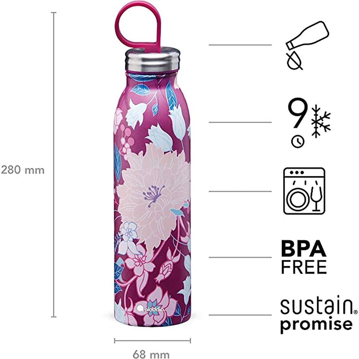 - EXCLUSIVE CHILLED WATER BOTTLE: In collaboratio with the Berlin based Japanese artist and designer Naito, this exclusive X Naito collection inspires and empowers you to stay hydrated without compromises in our urban on the go world. This exclusive water bottle keeps water cold for 9 hours thanks to the double wall Thermavac vacuum isolation so you stay hydrated throughout the day without single-use plastics and in style. No sweat or condensation thanks to Aladdin"s compact vacuum insulation technology.