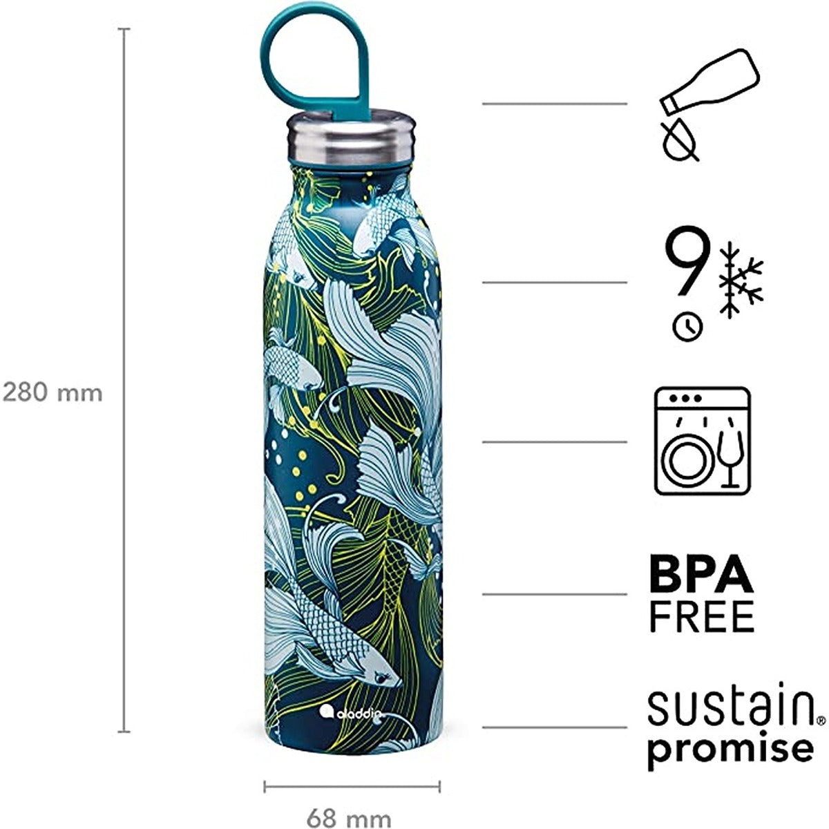 - EXCLUSIVE CHILLED WATER BOTTLE: In collaboratio with the Berlin based Japanese artist and designer Naito, this exclusive X Naito collection inspires and empowers you to stay hydrated without compromises in our urban on the go world. This exclusive water bottle keeps water cold for 9 hours thanks to the double wall Thermavac vacuum isolation so you stay hydrated throughout the day without single-use plastics and in style. No sweat or condensation thanks to Aladdin"s compact vacuum insulation technology.