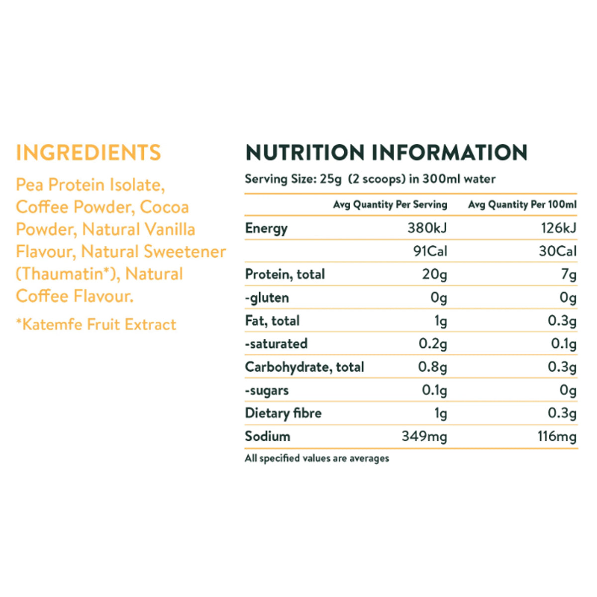 - 19-21 grams of protein per 25 gram serving (79%-84% protein depending on flavour)