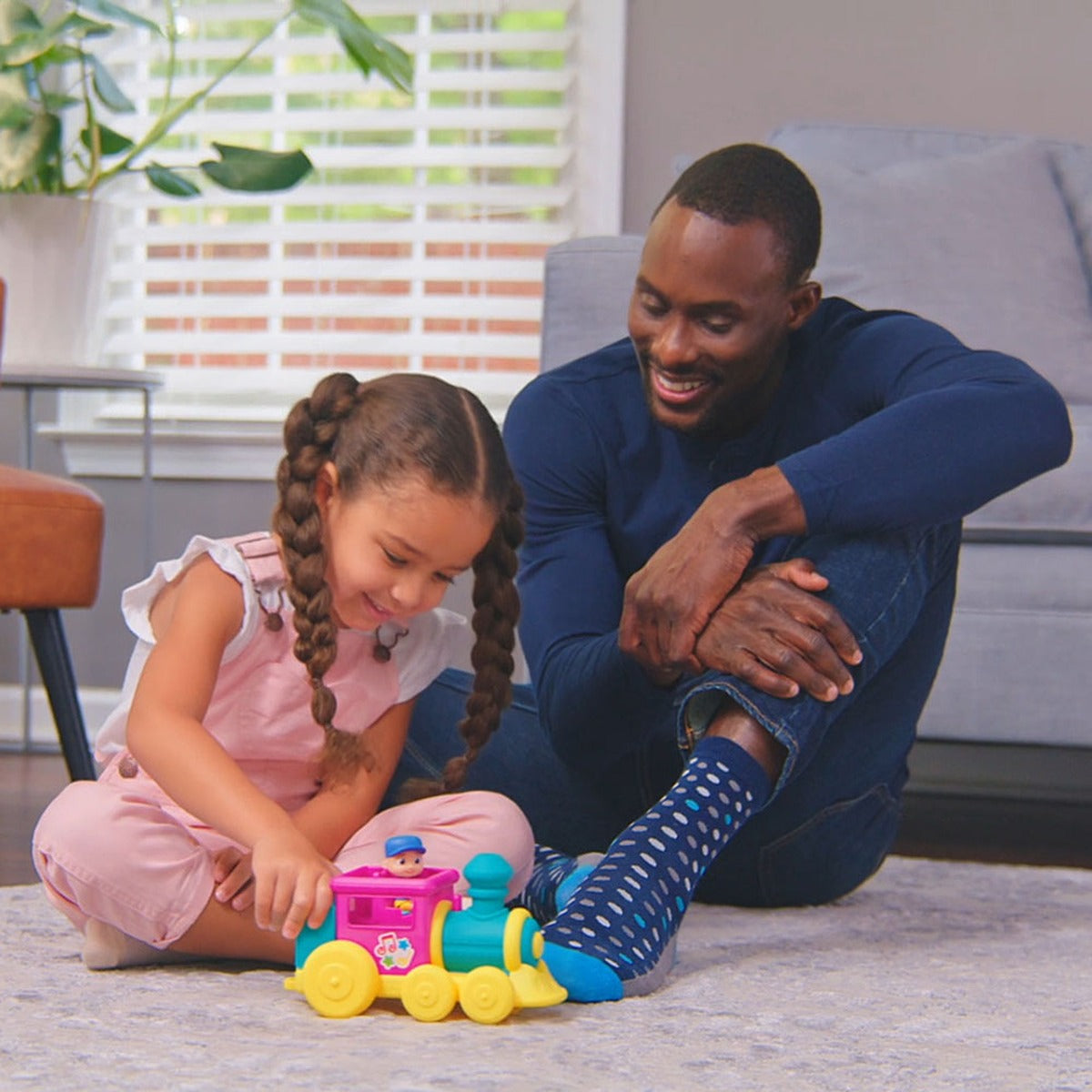Choo Choo! Get ready for a playtime adventure with JJ the Conductor and the Featured Train Vehicle! This feature vehicle comes with an exclusive JJ Conductor Figure so your little one can jump right into play time. This vehicle can fit up to four figures, so bring all your favourite CoComelon characters along for the ride! Want to hear a song? Press down on the train chiminea and hear the intro song, a tractor sound, and so much more. With the free wheeling drive, your little one can push around their train wherever they go and explore all the fun adventures with JJ inside the vehicle! There is always more to collect and explore with the CoComelon!