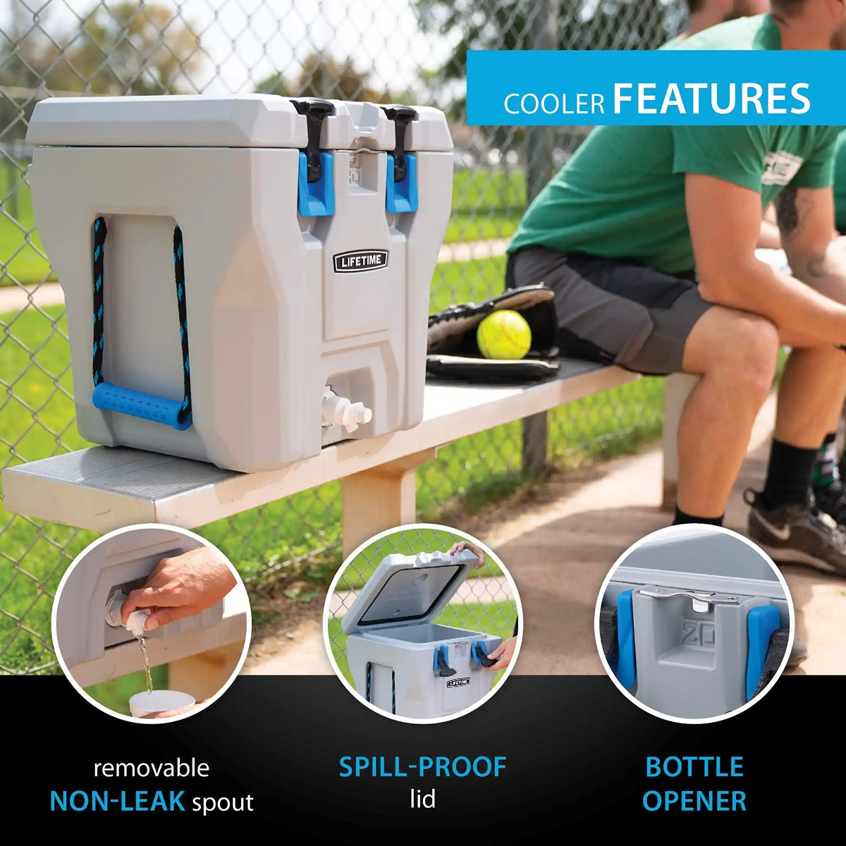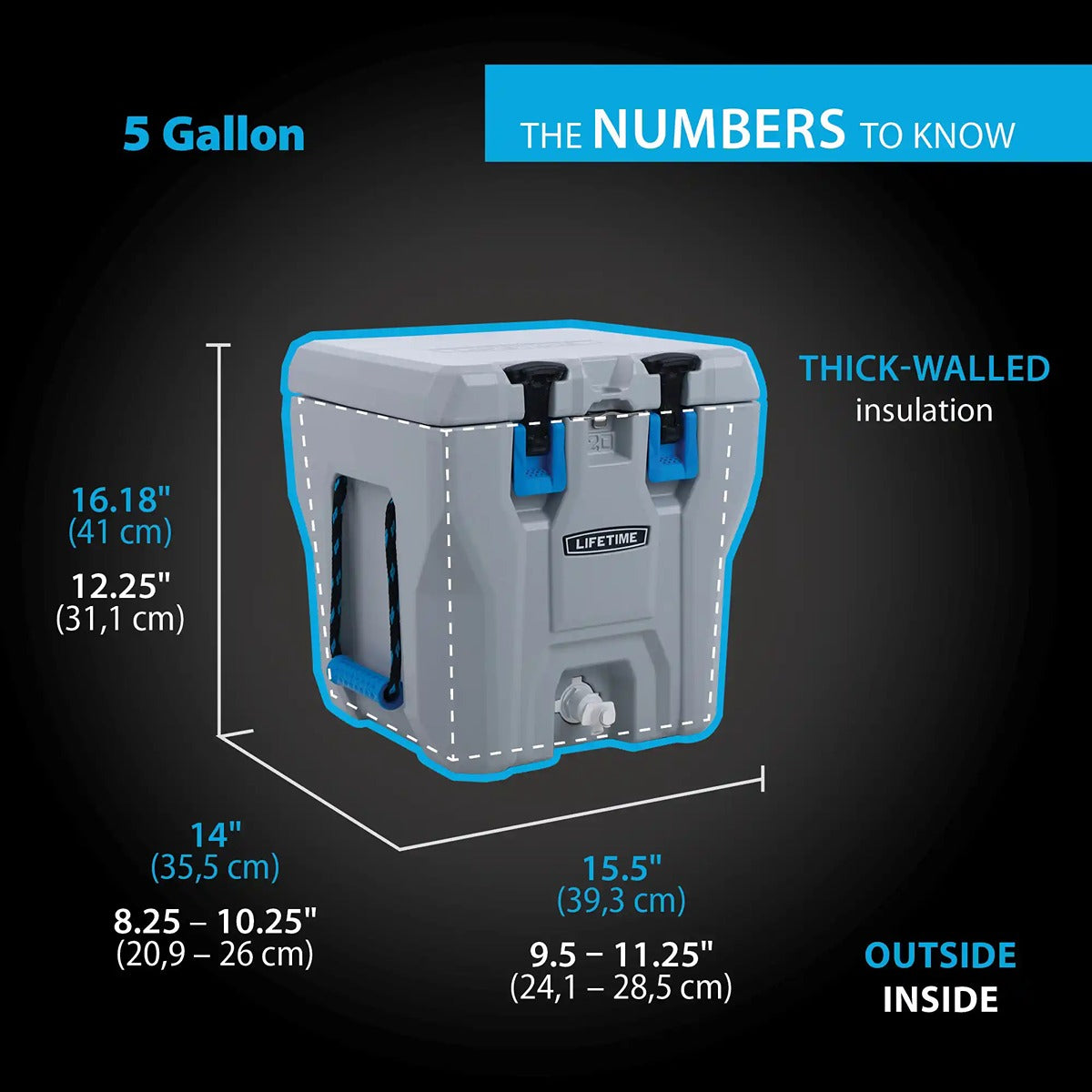 When it comes to adventure, you should have a drink cooler that?s as versatile as you are. The Lifetime 5-Gallon High-Performance Water Cooler is the ultimate companion for wherever life takes you. With a 5-gallon capacity, it?s perfect for your sports matches, camping trips, or cookouts. You can rely on your drinks staying cold inside its thick, insulated walls, and with a lightweight, durable build and a comfort-grip rope handle, you can take it anywhere with ease. A removable non-leak spout with superior air vent and a spill-proof lid will make filling the cooler and dispensing drinks a breeze. The Lifetime 5-Gallon High-Performance Water Cooler is the drink jug that can handle anything.