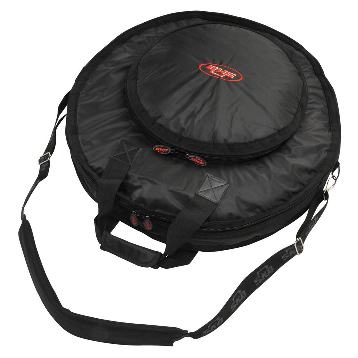 The black 22" Cymbal Gig Bag from SKB is a ballistic bag designed to safely hold approximately seven cymbals within its fully lined interior. Interior dividers separate each cymbal preventing them from rubbing against each other and causing damage. The dual zippers guard access to the contents and a double stitched shoulder strap makes portability easy. There are also top carry handles for an additional carrying option.