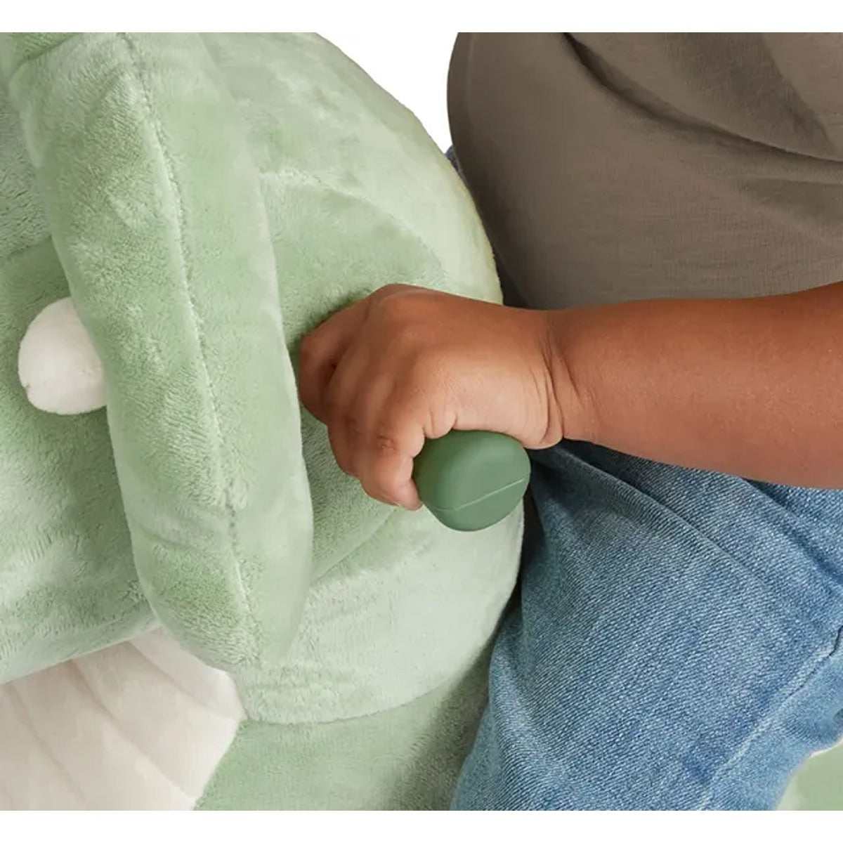 Meet your child?s new plush dino best friend, Dash! A Friendly Face Your child will love the smiling face of their new ride-on toy dinosaur with wheels. The dino?s head is plush like a stuffed animal ? soft to the touch and perfect for hugs! Dash is ready for active and imaginative play when you are. 360? Caster Wheels The dinosaur toy"s EZ-Glide wheels spin 360?, allowing children to create their own motion and move in any direction. Enjoy the ride-on dino anywhere from hardwood floors to the driveway or sidewalk ? these rolling caster wheels are safe for both indoor and outdoor use. Comfortable Riding Dash features a cushioned saddle and easy grip handles for extra comfort and control while your child rides.