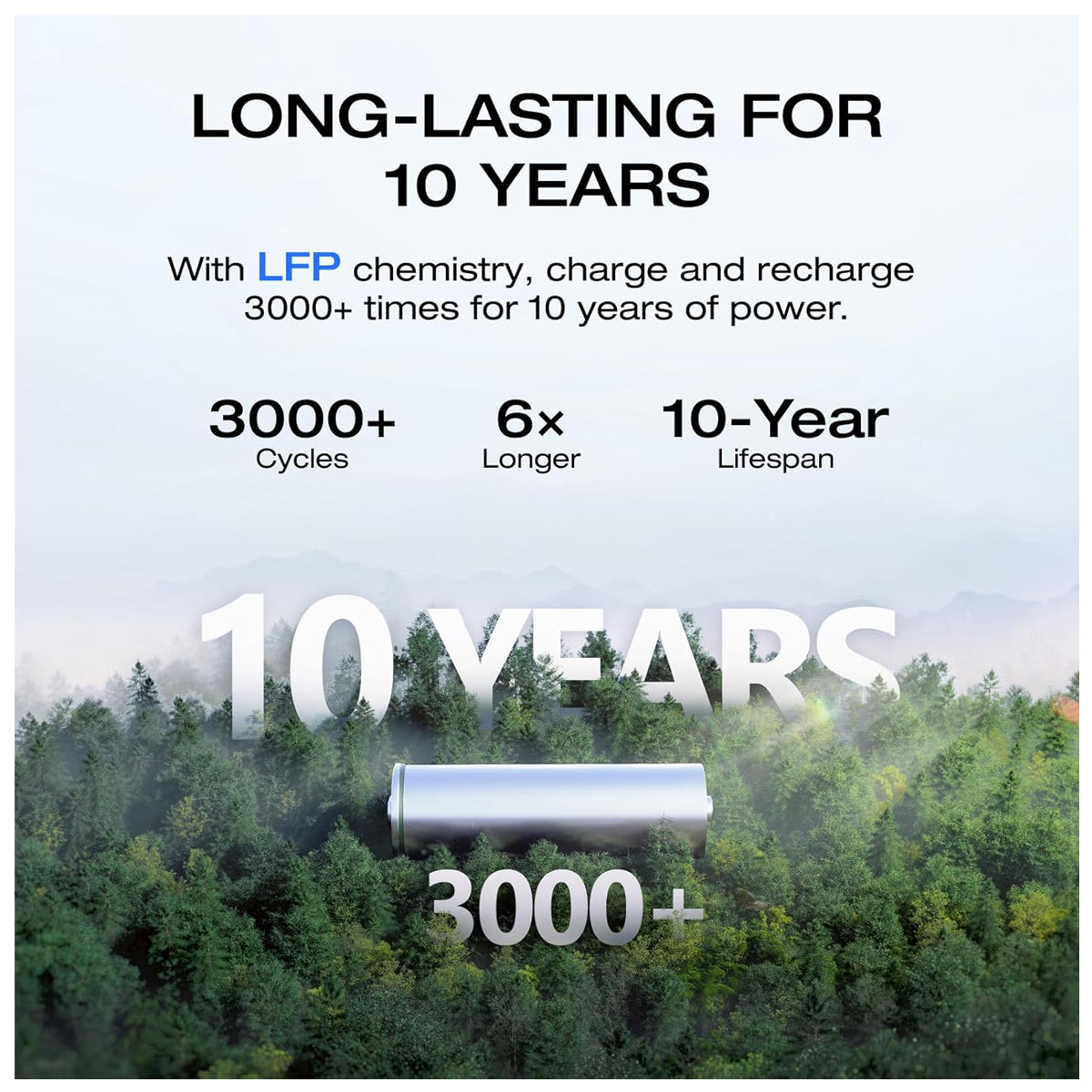- 10 Years of Daily Use: With LFP battery chemistry, the battery pack has a 6× longer life than the industry average. Using exclusive X-Guard, the extra battery is protected with real-time monitoring and 40 protective features including overheating and short circuit.