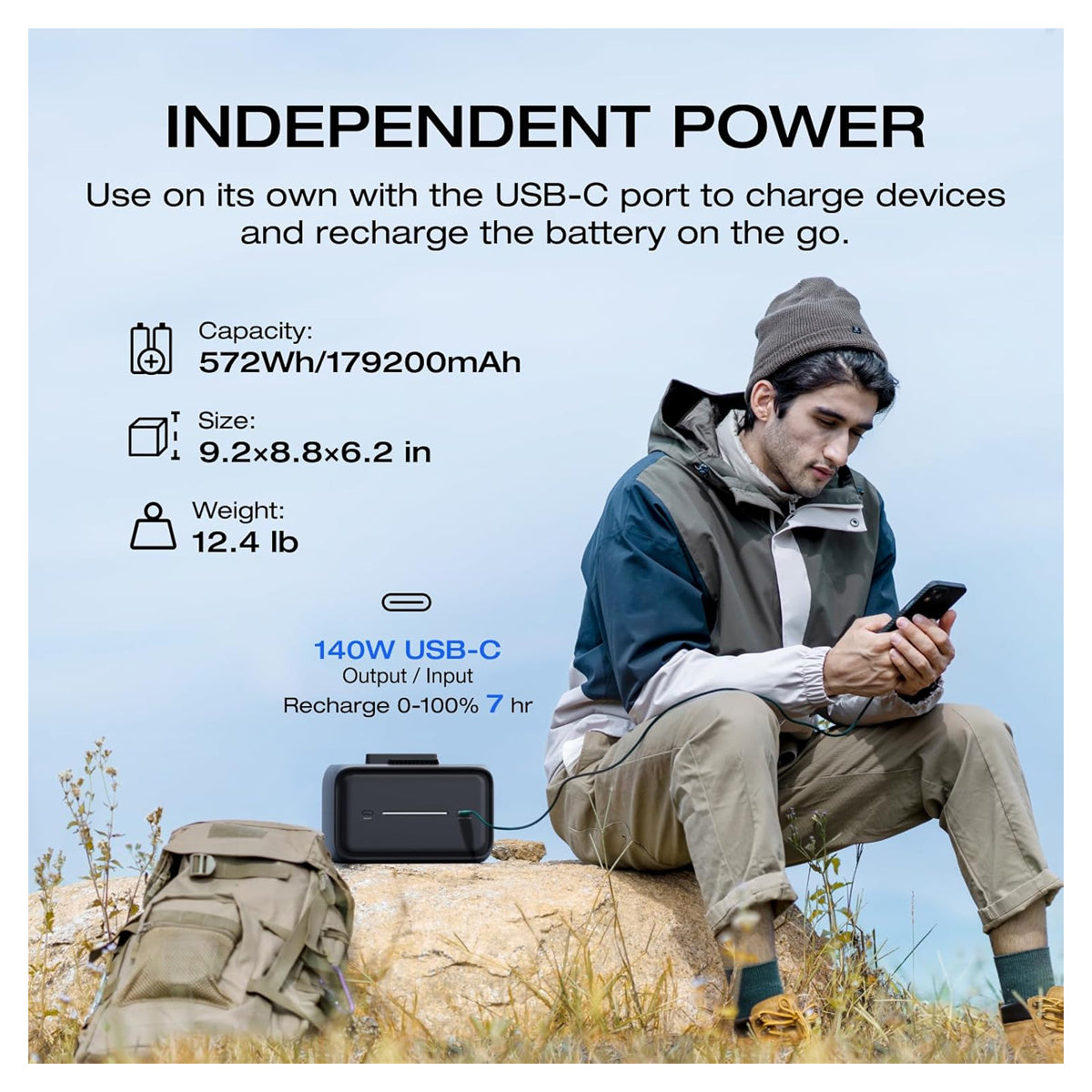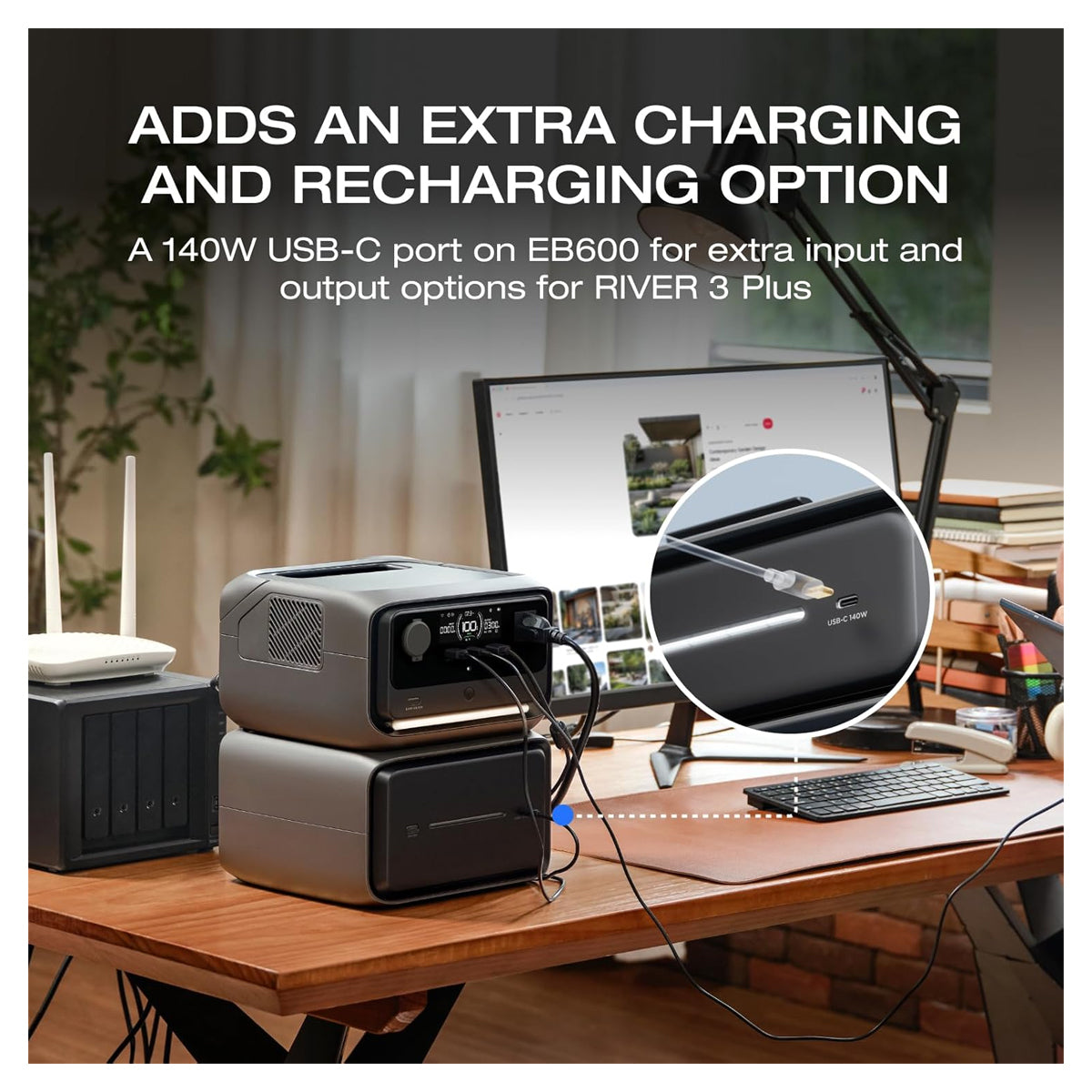 - Use Independently: Lighten your load and use the extra battery on its own without RIVER 3 Plus. Use its 140W USB-C port for charging small devices and recharging the battery when you're on the go.