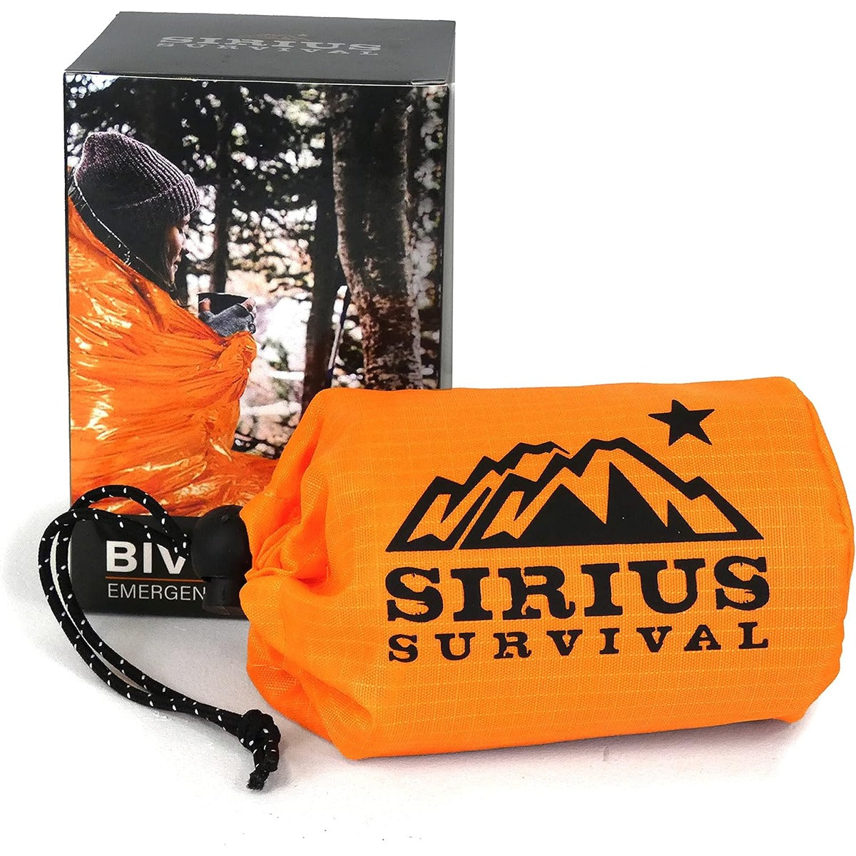 The Emergency Bivvy with Rescue Whistle will keep you warm and dry in an emergency. Weighing less than 4 oz. and smaller than a soda can, bivvy reflects 90% of your body heat back to you and is sealed to protect you from wind, rain, and snow. This highly visible orange bivvy features an attached tinder cord drawstring for fire starting and a survival whistle.