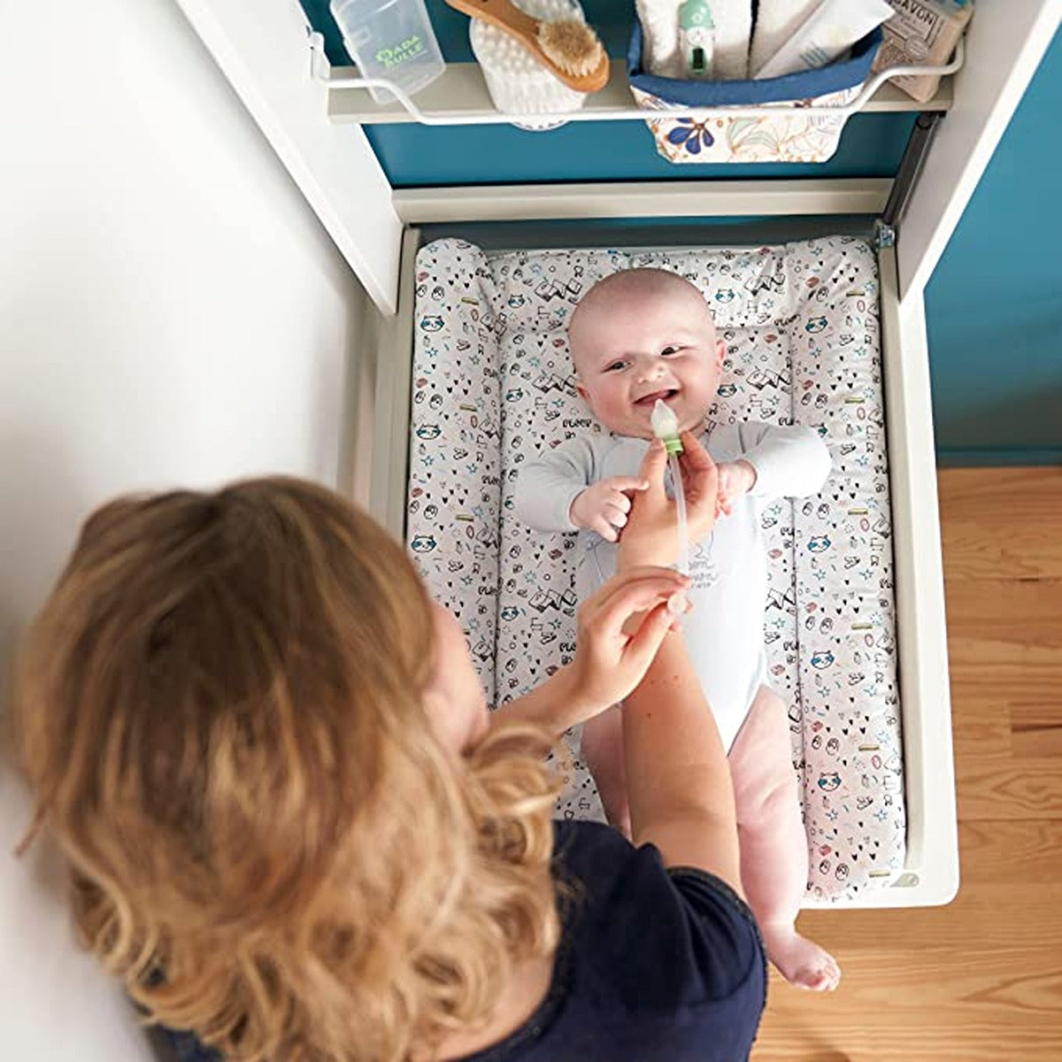 Hygienic, easy to use, clean and store in its box!آ Does your little one often have a stuffy noseآ Don"t worry, the Badabulle manual squeegee will be your best ally!آ Your son needs you to unclog his nose.آ Thanks to its flexible and soft anatomical nasal nozzle, the pump can be used from birth.آ Its patented built-in filter acts as a barrier against mucus, so there is no risk of aspirating it!آ This easy and effective snot remover can be taken everywhere thanks to its recycled plastic transport box.آ For greater hygiene, it is easily disassembled, washed with water and can even be placed in the steriliser.آ Discover the rest of our Badabulle Bathers collection so that they are always well equipped.آ I"m sure you"ll love it (and your baby too):