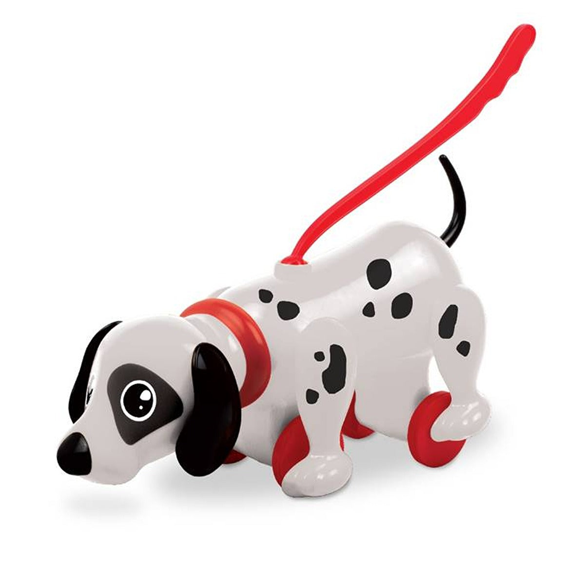 The Puppy is sniffing around while you push along and funny walking style makes it cute campanian.