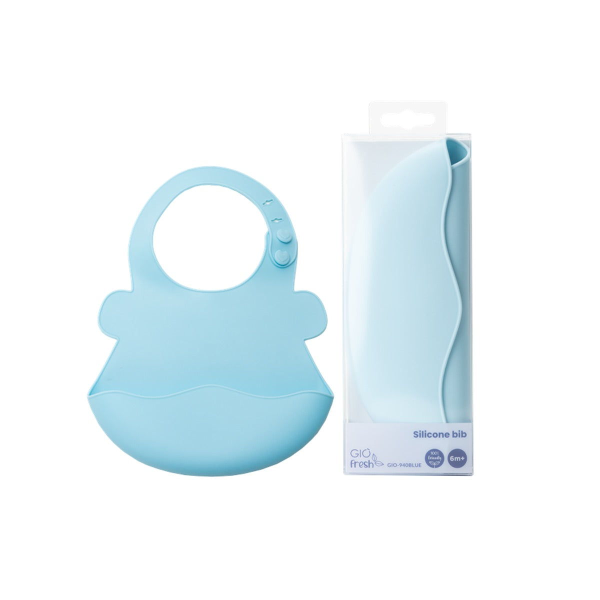 Ideal for starting the adventure with independent eating and for adding new foods to your baby’s diet. The aesthetic pastel colours and the attractive, eye-catching design go hand in hand with the product"s functionality. The bib is great at protecting the child’s clothes from getting dirty during mealtime. The deep front pocket is great for catching food that didn’t end up in the baby’s mouth. Because the bib is light and flexible, it is a great fit for the child’s body. The neckband has a four-step size adjustment to fit around baby’s neck. This makes the bib universal for children of different age groups. The material used for the product is durable, soft and skin-friendly, easy to roll and fold. You can easily fasten and unfasten the bib thanks to its round buttons. Made from high-quality silicone safe for children. Easy to clean. Dishwasher-safe. Thanks to the bib’s resistance to heat, you don’t need to worry about spilling a hot meal on it..آ آ
