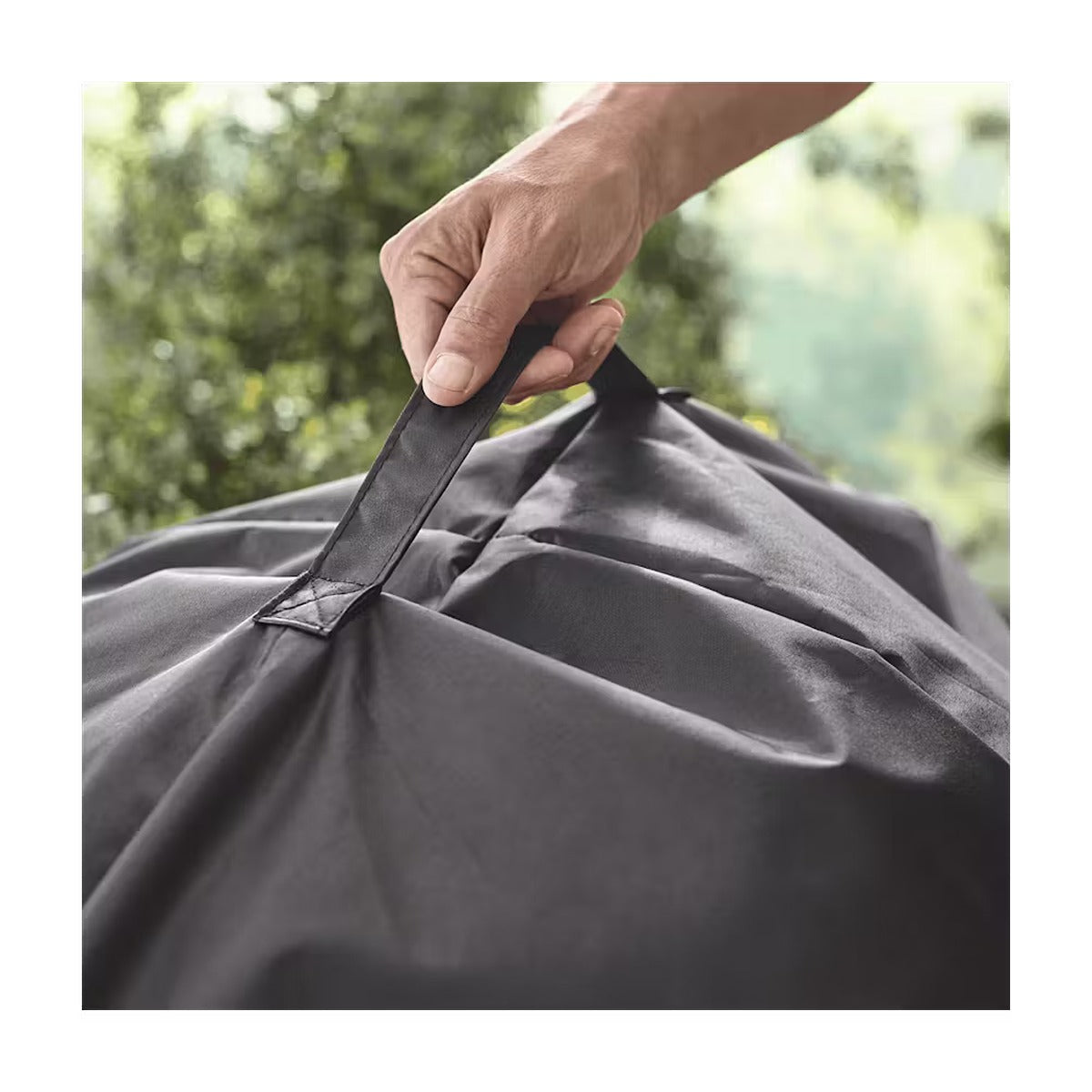 Embrace the pouring rain, freezing snow, and scorching sun. The lightweight yet durable Premium Grill Cover makes it easy to pull on and off your grill. Its fastening straps keep it from blowing into your neighbor’s yard, and water-resistant material helps maintain a clean, sleek surface.