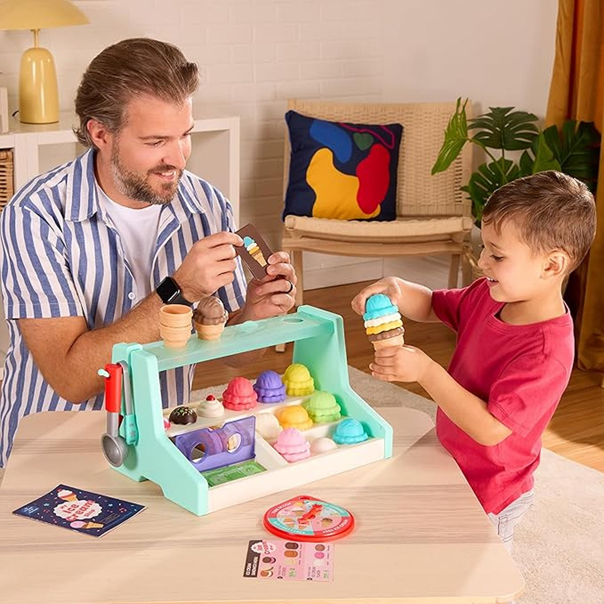 LELIN Ice cream selection is an ideal learning tool for children while they play. Little chefs will enjoy creating their own ice cream presentation with this 25 -piece toy playset. This charmingly colourful toy set encourages children to lay out a place setting for a kitchen, restaurant or ice cream shop of their imagination and it develops creativity, promotes hand-eye coordination as well as social skills in young kids.