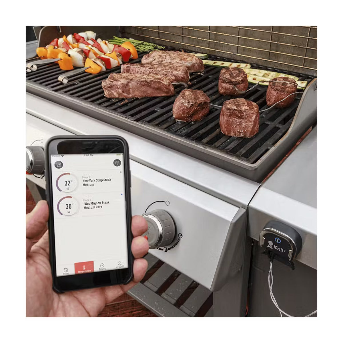 The Weber iGrill 3 is your answer to perfectly grilled food, every time, and mounts directly into your Genesis II or Spirit II gas grill. This app-connected thermometer allows you to monitor the doneness of up to four cuts of meat, from beginning to end, and notifies you on your smart device once food has reached the perfect temperature to serve.