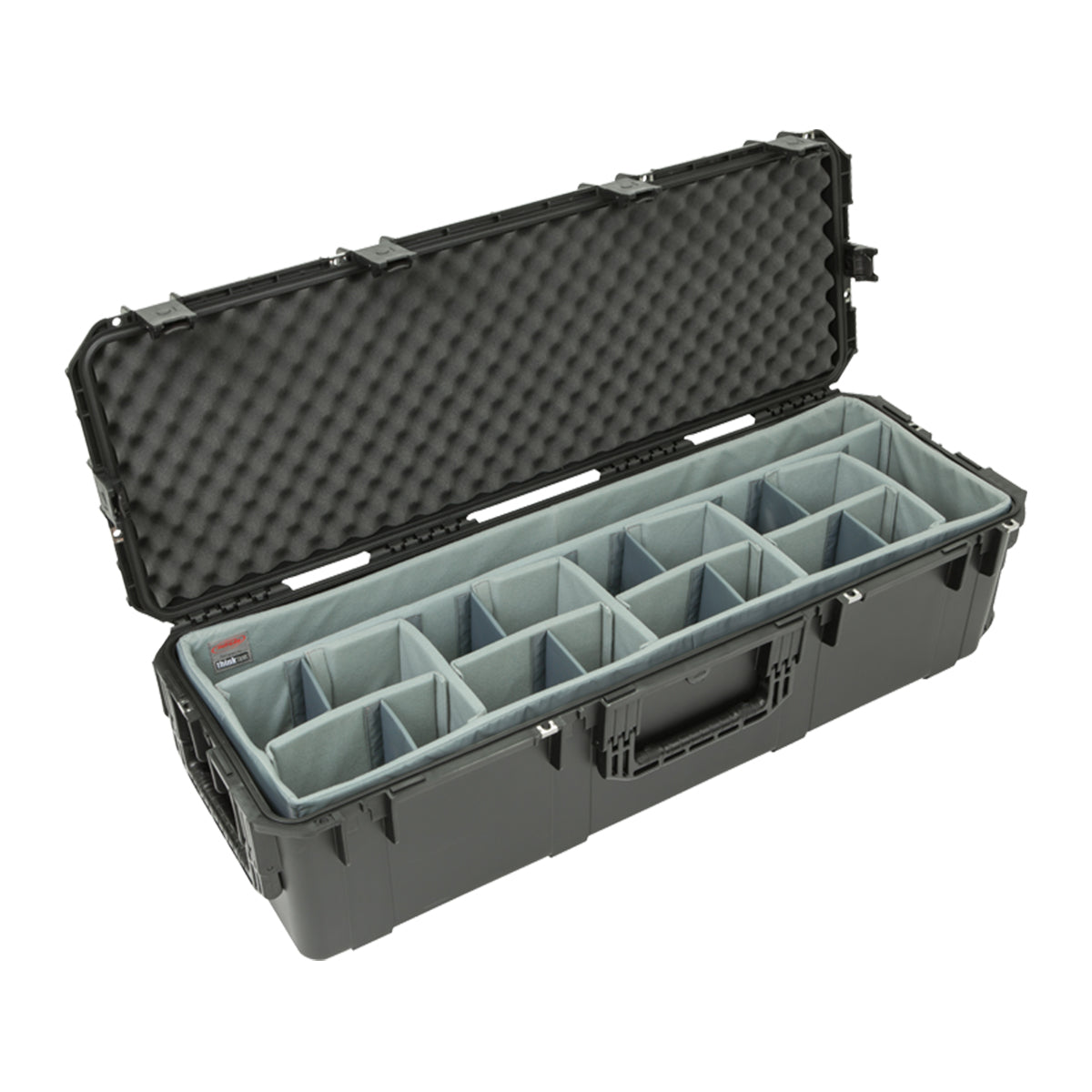 The 3i-4213-12DT is watertight and dustproof, and features a deluxe deep closed cell fitted foam liner, (4) heavy duty hinged dividers, (12) padded sub-dividers, and (1) heavy duty divider, all of which are Nylex-wrapped and designed with heavy duty hook-and-loop tabs to create the perfect fit for lighting stands and other accessories. This case also features built-in wheels and a convenient handle for easy transport.