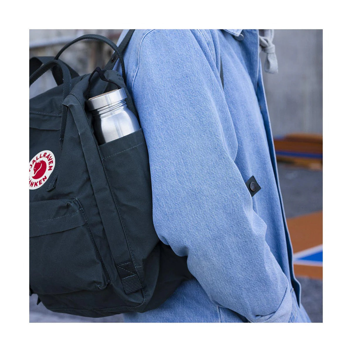 Match your K?nken with your Klunken. A durable single-wall stainless steel water bottle that matches the color and fits into the side pocket of your K?nken. A perfect way to carry your favorite beverage in your beloved K?nken backpack. Available in a variety of colors that exactly match or compliment your bag, these single-walled bottles are an everyday hydration solution at school, the office or while traveling. Made for your everyday needs, these food grade 18/8 stainless steel bottles are extra durable and won?t pick up or give off any flavors. The cork top lid is attached to color-matched webbing, making this sleek bottle easy to grab or carry on it?s own. Designed to slip into your K?nken side pocket, the Klunken Bottles meet the needs of everyday explorers thirsting for new adventures.