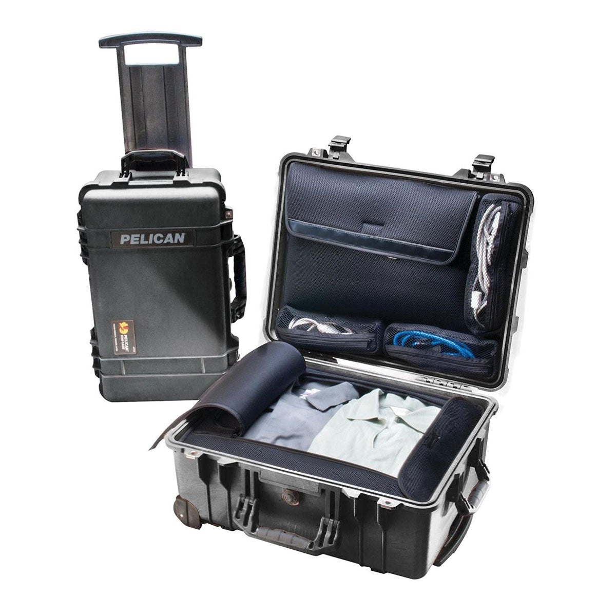The black 1560LOC Laptop Overnight Case from Pelican provides ample room for your travel needs with a durable, weather-proof design. The case features a durable hard plastic exterior that can stand up to the abuse of travel thanks to its crush-proof design. Additionally, its O-ring seal keeps out dust, dirt, and water so your items remain protected regardless of the weather conditions. Further, the case can even withstand submersion in water thanks it its IP67 rating (1 meter submersion for 30 minutes) without damaging your laptop, clothing, or other critical items thanks to the built-in automatic pressure equalization valve. The stainless steel hardware and padlock protectors are as durable as the rest of the case.