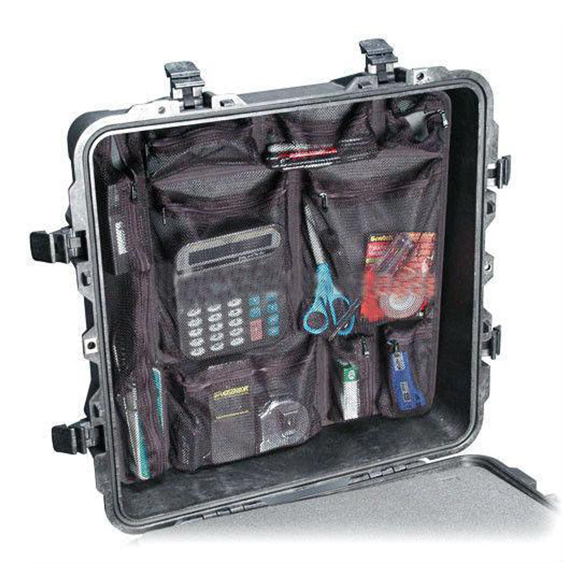 The Pelican 0379 Lid Organizer is designed specifically for the Pelican 0370 Cube Cases and the Pelican 1640 Transport Cases. Easily installed with the six included mounting screws and is made of ballistic nylon with nylon zippers and features an assortment of pockets in various sizes to protect and keep your gear organized.