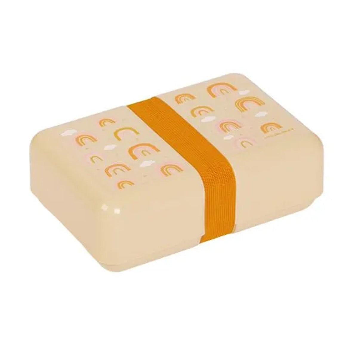 - This lunch box has a handy elastic band and enough space for a drink, a sandwich and a biscuit. The lunch box is easy to wash by hand and can be combined with a matching drinking bottle or backpack. Complete the set! Nice: the lunch box comes with a free sticker sheet.