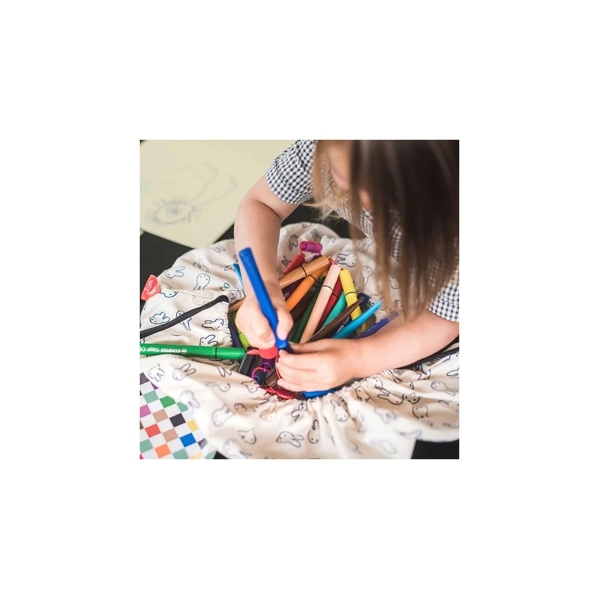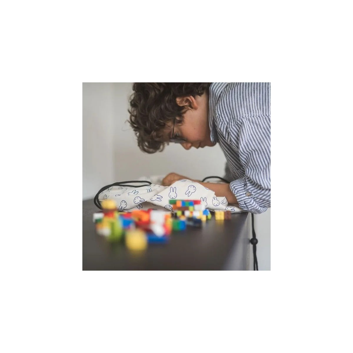 Discover the cute Miffy Mini storage bag! Miffy always loves play, adventures and exploring. Which makes her the perfect playtime companion in our eyes. The Mini Miffy bag can store all your favourite little toys, bricks and blocks and make it easy to carry it from room to room. Don?t worry about the mess: once you open the Mini bag, the rim prevents stuff from spilling out. It?s also great for arts & crafts materials, large enough to hold all kinds of pencils and markers. When it?s time to go, simply pull the strings and everything can be neatly put away. A fantastic collaboration between Play&Go & Miffy, to celebrate Miffy?s endless playfulness and curiosity and inspire your child to do the same. Did you know? For each purchased bag, we plant 1 tree. Because we want children to be able to play anywhere, and we can only do that by looking after the Earth and making sure it stays green and healthy. Specifications: Diameter 40 cm 70% cotton - 30% polyester One side printed (inside ecru cotton color)