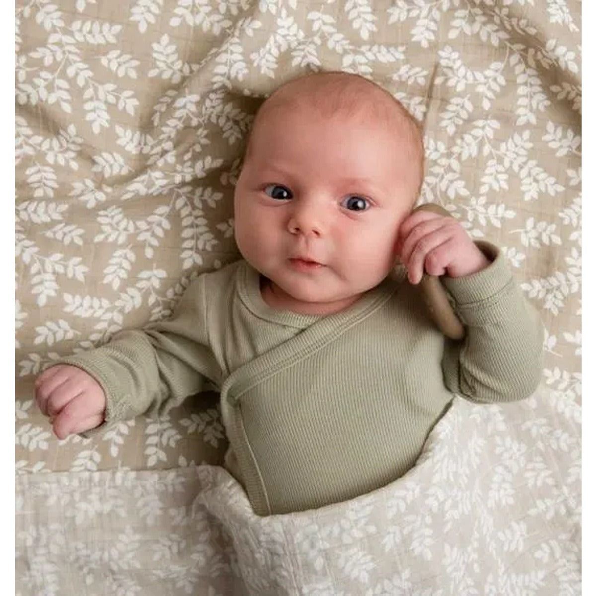 A Little Lovely Company Muslin Cloth Set of 2 Leaves - Taupe