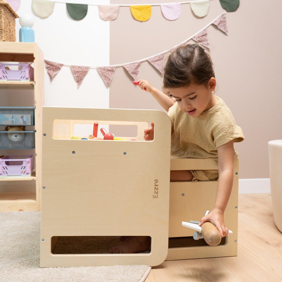 Universal set includes two chairs and one table and can configure to a bookshelf, study table, play table and much more. Give your little one a hub for all their learning, playing and crafting requirements with this Montessori Table Set. "1 Table and 2 Chairs