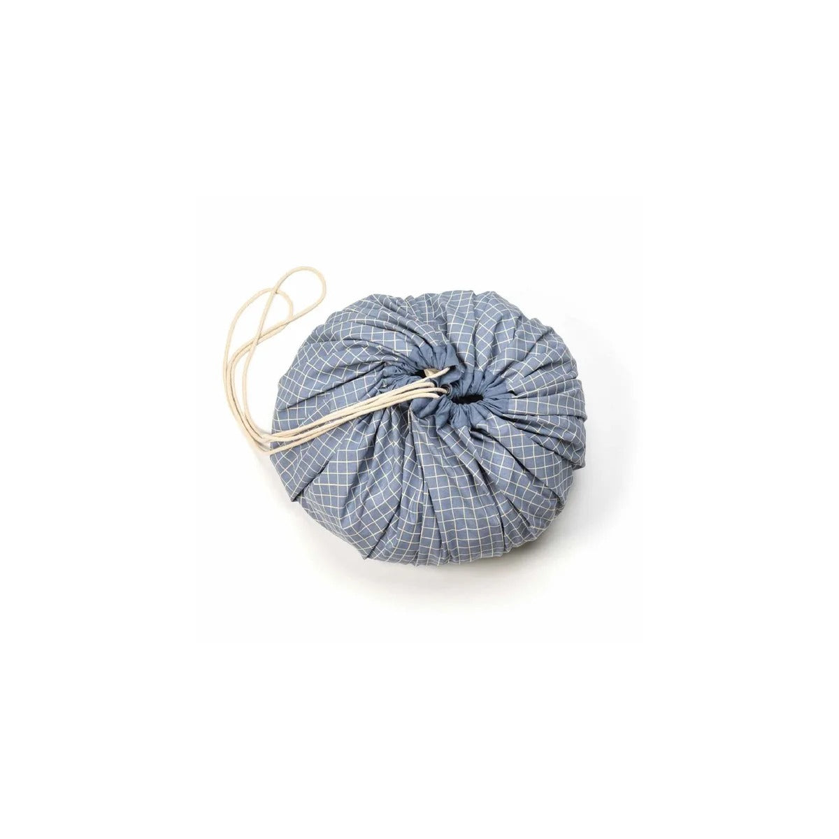 Play and Go Organic Playmat and Storage Bag - Grid Blue