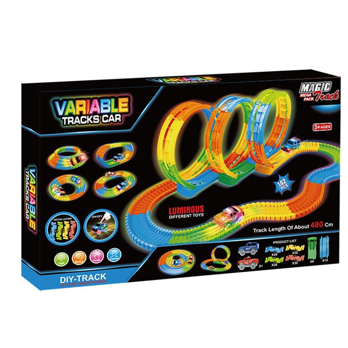 - amazing new racing track that bends, flexes and glow in dark