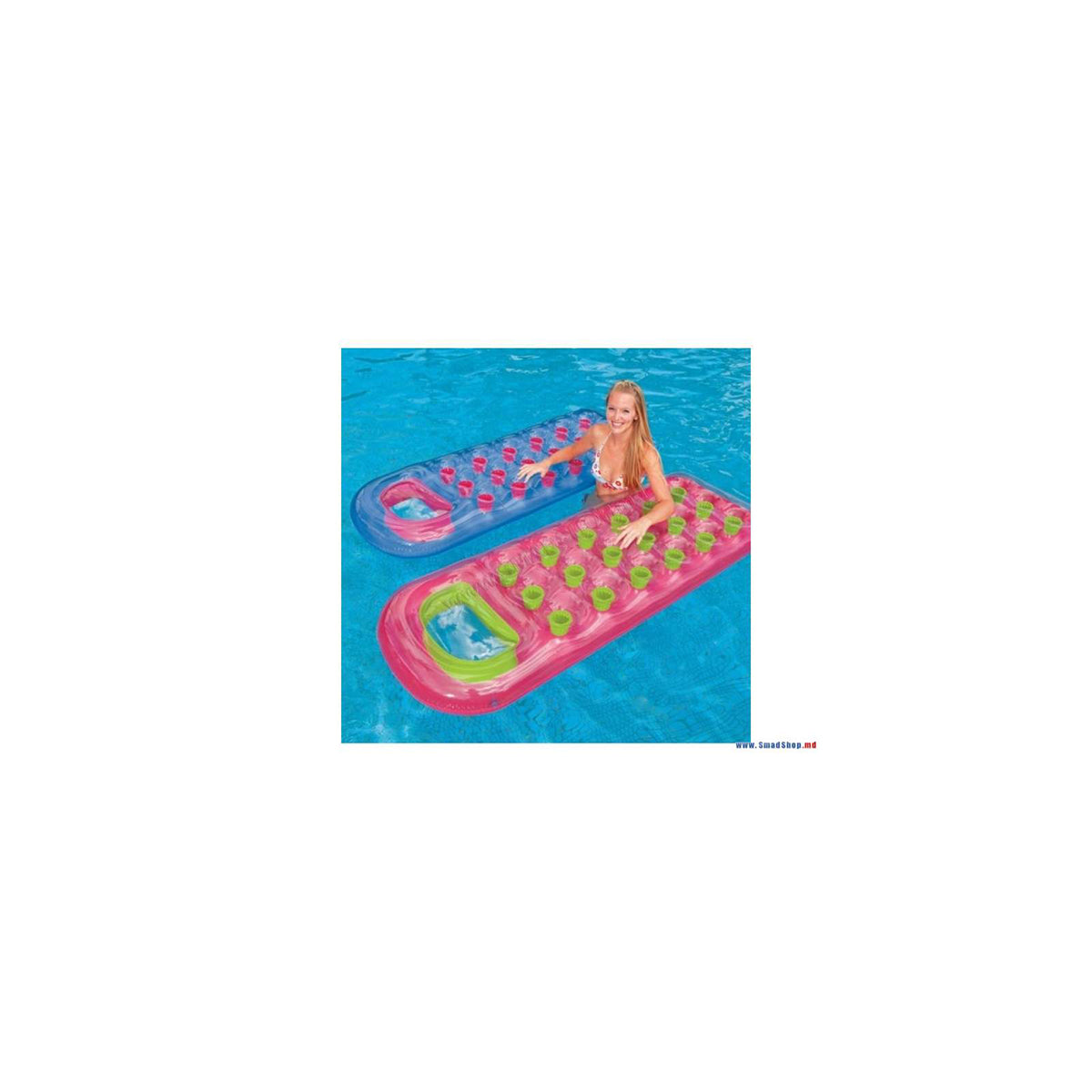 An inflatable mattress can serve not only as an accessory for swimming, it can also comfortably and gently sunbathe in the sun, just stretch out on the beach and take a short nap in the shade. The mattress is two-color, and the connection of the upper and lower layers is made in the form of "recessed sTakanchikov". All this looks very nice and unusual. Its length is 188 cm, width is 71 cm. For greater comfort, the inflatable mattress is equipped with a headrest. Intex 59895 weighs only 1 kg. It folds compactly and does not take up much space in a beach bag. Adults and children over 6 years old will get a lot of positive emotions from using the intex 59895