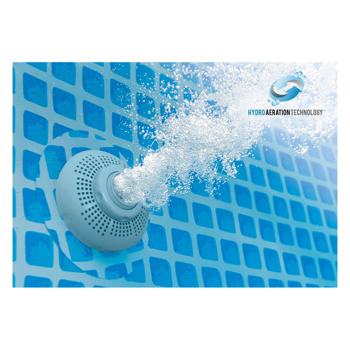 The Intex Prism Frame 10ft rectangular pool is designed to fit any backyard. Built to provide extra swimming space, it holds more pool water than traditional round frame pools, allowing swimmers to appreciate the maximized swimming area. It is constructed with puncture-resistant 3-ply durable material. It features all of the great benefits of Metal Frame pools, and are enhanced with strong powder-coated steel tubing and stylish and upscale looking liner color. Hydro Aeration Technology is incorporated into the cartridge filter pump providing improved circulation and filtration, improved water clarity, and increased negative ions at the water surface.
