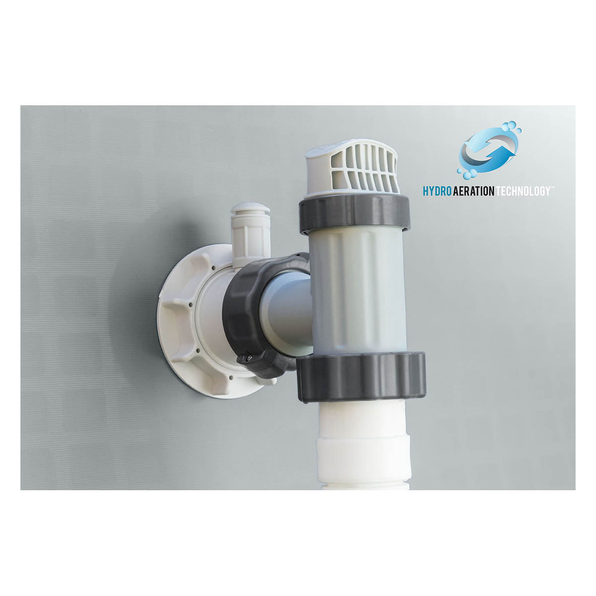 - Dual suction outlet fittings improve water circulation resulting in better water hygiene and clarity