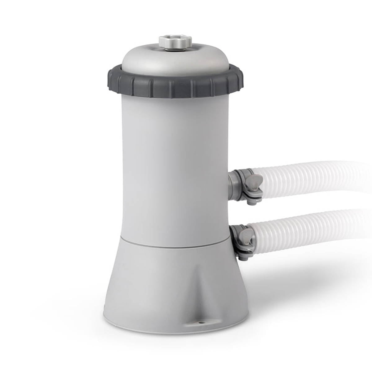 - Fill your pool with water and enjoy. It comes with a 1,000 gal cartridge filter pump. Water capacity is 2,873 gallons (90%) and it is ready for water in 60 minutes.