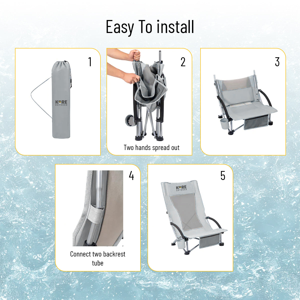 Kore Outdoor Portable low sling beach camping concert folding chair high mesh back