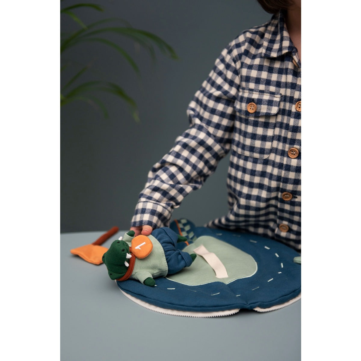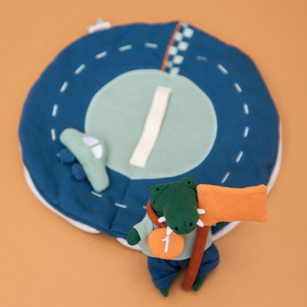 Who is the fastest? Mr. Crocodile is here to put every racer to the test! Grab a couple of wheels and let the fun begin! The first one to cross the finish wins a golden medal. Zip up and take this world of imagination anywhere you go!This fun range of animal puppets and their cute accessories spark children?s interest and creativity. Each little setting encourages them to tap in their own imagination and play creatively. Together with these little figurines, kids discover all the joys of open ended play! On top of that, children develop a great deal of valuable skills while playing with these puppets. By creating their own stories, children learn how to look at situations from different perspectives. Playing with these fun friends helps them expand their vocabulary and enhance their social skills.