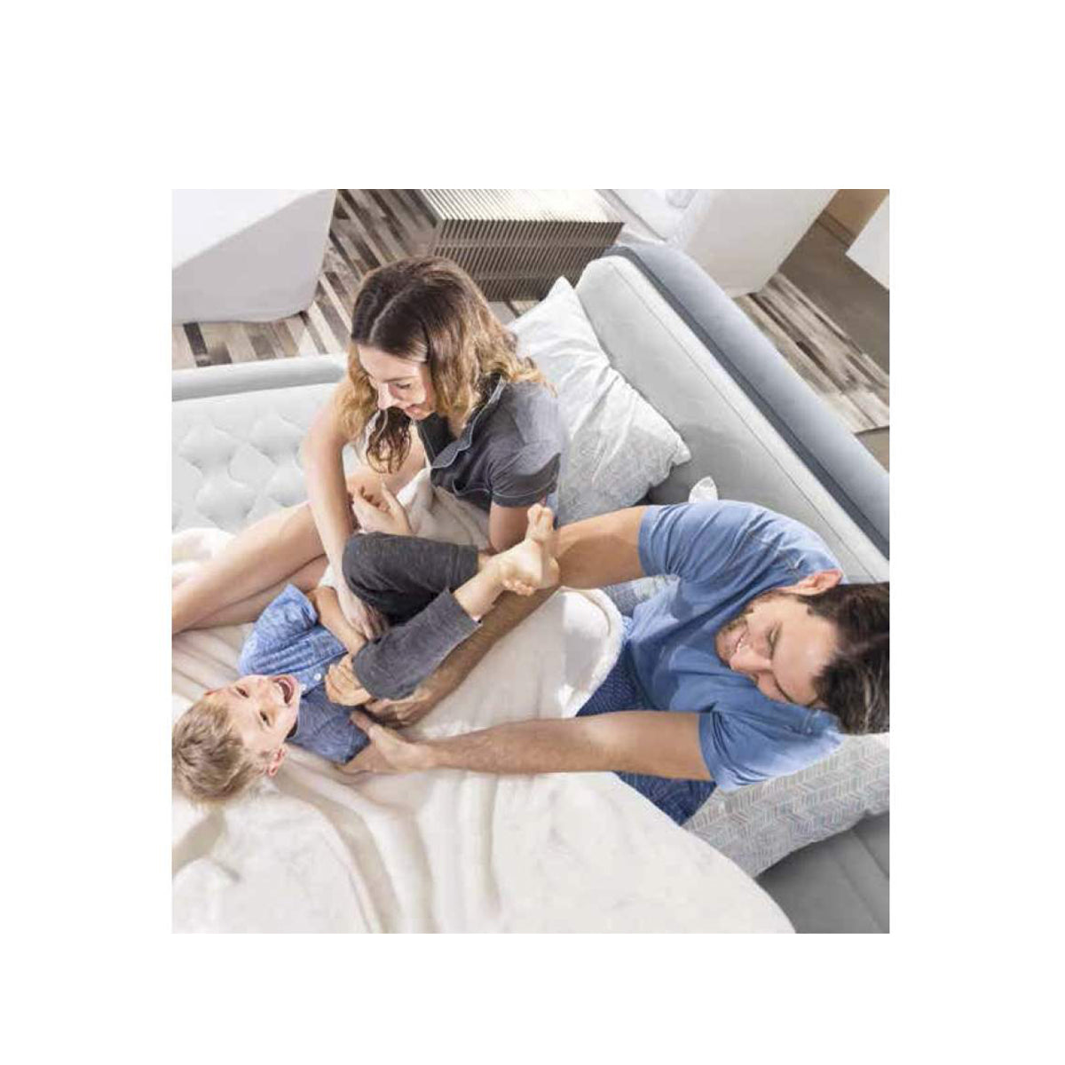 New in 2019, the Intex 64448 model replaced the very famous and sold Intex 64460. There are situations when you need to quickly organize a sleeping place or a place to rest, for example, when traveling, at a party or in the country. In this case, an inflatable bed with a headrest Intex is ideal. 64448 ULTRA PLUSH HEADBOARD BED. Due to the efficient electric pump, which is included in the kit, in a matter of minutes you can organize a berth with a length of 203 cm, a width of 152 cm and a height of 46 cm. The texture of the top covering is made in such a way that the bed linen does not slide off it. And for better stability, the bed is equipped with special transverse partitions located inside the frame. The partitions are made using the innovative Dura Beam technology. This technology, in contrast to the Wave Beam technology with PVC partitions, involves the use of a large number of high-strength fibers for the manufacture of partitions that do not stretch or deform during the operation of the bed. This ensures the rigidity and stability of its frame. Therefore, the bed will not be pushed or squeezed during the entire service life. Compact folding Intex 64448, does not take up much space in the closet or trunk of the car. The bed will serve you for many years and will always be at hand at the right time. does not take up much space in the closet or trunk of the car. The bed will serve you for many years and will always be at hand at the right time. does not take up much space in the closet or trunk of the car. The bed will serve you for many years and will always be at hand at the right time.