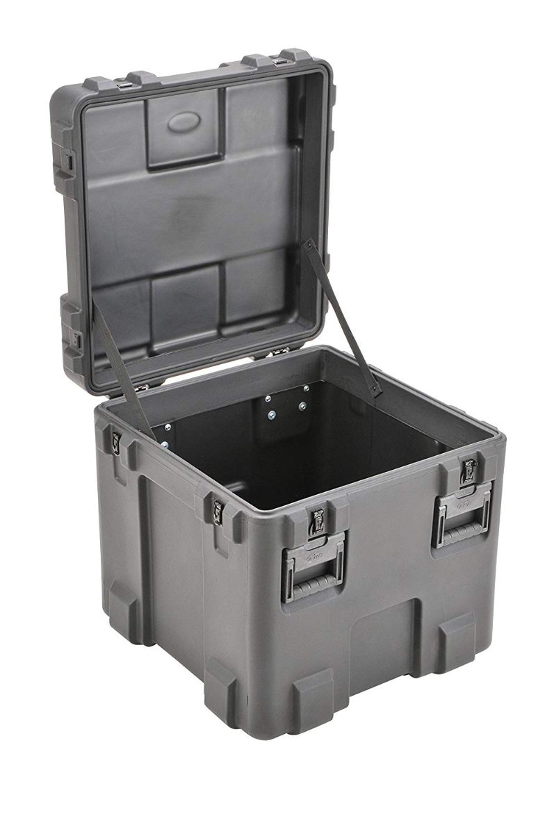 The SKB 3R2424-24B-E Mil-Standard Utility Case is designed to meet the most demanding military specifications. The case is roto-molded for strength and durability with an LLPDE shell for maximum impact resistance. It is water proof with solid stainless steel latches and hinges that will withstand the most demanding shipping conditions and they are padlock lockable. Optional casters are available.