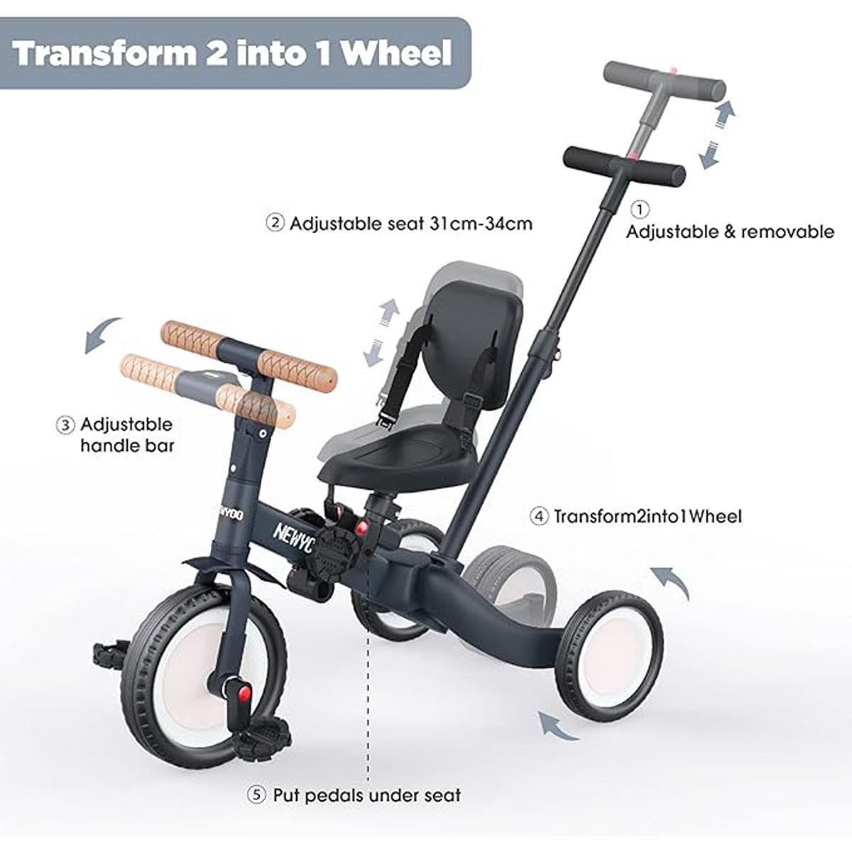 The 3-in-1 Stroll ?N Trike is a versatile and adaptive trike designed to accompany your child?s growth and development over the span of four years. With three distinct riding stages, this trike serves as an ideal learning vehicle for children as young as 18 months. Its transformative design includes removable features like an adjustable push handle and safety ring, ensuring a seamless transition from a toddler trike to a classic tricycle. This trike is not just a mode of transportation; it?s a companion throughout your child?s early riding journey, fostering years of fond memories and enjoyable experiences.