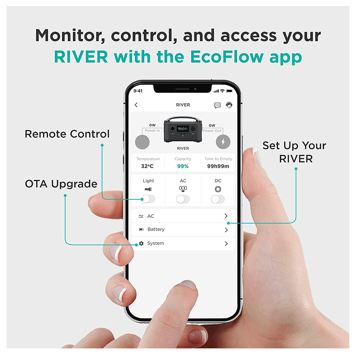 Compact and portable, EcoFlow RIVER is an ideal recreational power which gives you the accessibility to handy wall outlets. EcoFlow RIVER is the perfect companion for camping, overlanding, tailgating, boating, etc. Feel free to attach and detach the Extra Battery to meet your needs now and later.