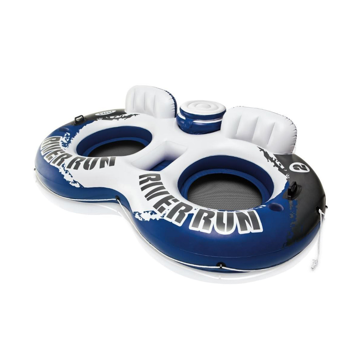 Have fun relaxing and floating in the pool or at the lake with the Intexأ¯آ؟آ½ River Runأ¯آ؟آ½ II inflatable water tube. Designed with two lounges that are interconnected and a large built-in cooler with lid, this lounge is perfect to float with a friend. The built-in backrests provide easy cruising and a mesh bottom keeps you cool. This fun lounger has five air chambers for added safety, and two built-in cup holders to keep your refreshments nearby as you relax in the water. easy to use connectors are included for fastening it to other Intexأ¯آ؟آ½ River Runأ¯آ؟آ½ floats. An all-around grab rope and two heavy-duty grab handles are included for ease of use.