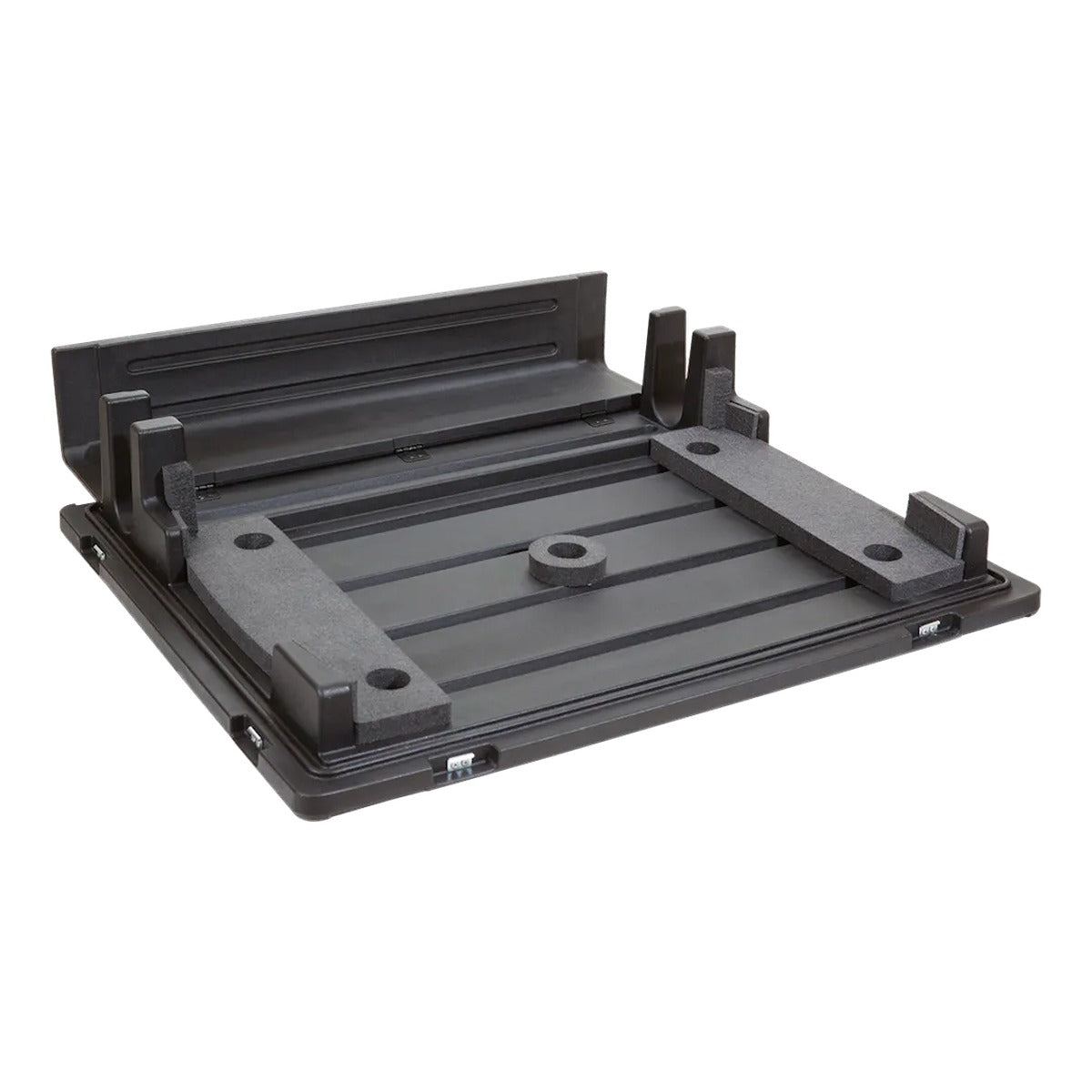 This rSeries Mixer Case features a custom foam interior for a X32 Behringer 32 Channel mixing console, with a double-walled, roto-molded LMDP exterior for maximum strength and rigidity with (4) casters (two of which are locking casters), (6) Spring loaded handles, (8) Steel heavy-duty latches, and a hinged doghouse for management of all of the back connectors.