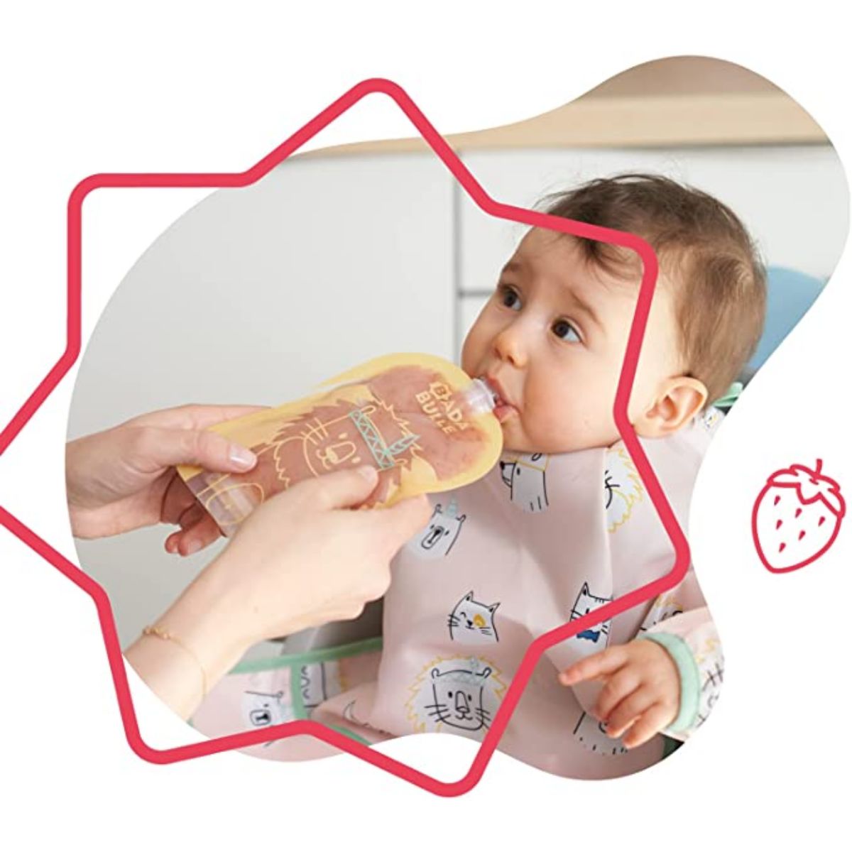 Nomadic water bottles, ecological and practical on a daily basis!آ Puree, yogurts, compotes, even more puree,... You are spoiled for choice when it comes to filling and re-filling these Badabulle reusable water bottles.آ They are easy to fill and clean thanks to their large bottom opening.آ They are airtight thanks to their ultra-resistant zip closure system.آ The 15 water bottles in this set accompany you to the park, to the nanny and even to school!آ For young and old, these 150ml water bottles are reusable up to 20 times.آ If you like to prepare your baby"s meals in advance, fill these pouches with your delicious homemade purees or compotes and keep them in the fridge or freezer.آ You can reheat them in a bain-marie.آ Mixed and neutral, the set includes 3 different designs,آ something to please everyone!آ They are transparent to clearly see what"s inside, and include a scale.آ Once all clean they are easily stored in the closet!آ So which of the lion, the cat or the bear will be the most greedyآ Discover the rest of our Badabulle gourmet collection for well-equipped meals!آ You"ll love it for sure (and your baby too): - Pack of 15 150 ml water bottles - Reusable, up to 20 times - Open from the bottom - Graduations and writing area provided - Transparent - Suitable for babies and to children - Shock and drop resistant - Freezer and dishwasher safe - Recyclable PET material Composition: recyclable PET Maintenance: dishwasher safeآ and include a graduation.آ Once all clean they are easily stored in the closet!آ So which of the lion, the cat or the bear will be the most greedyآ Discover the rest of our Badabulle gourmet collection for well-equipped meals!آ You"ll love it for sure (and your baby too): - Pack of 15 150 ml water bottles - Reusable, up to 20 times - Open from the bottom - Graduations and writing area provided - Transparent - Suitable for babies and to children - Shock and drop resistant - Freezer and dishwasher safe - Recyclable PET material Composition: recyclable PET Maintenance: dishwasher safeآ and include a graduation.آ Once all clean they are easily stored in the closet!آ So which of the lion, the cat or the bear will be the most greedyآ Discover the rest of our Badabulle gourmet collection for well-equipped meals!آ You"ll love it for sure (and your baby too): - Pack of 15 150 ml water bottles - Reusable, up to 20 times - Open from the bottom - Graduations and writing area provided - Transparent - Suitable for babies and to children - Shock and drop resistant - Freezer and dishwasher safe - Recyclable PET material Composition: recyclable PET Maintenance: dishwasher safeآ bear will be the most greedyآ Discover the rest of our Badabulle gourmet collection for well-equipped meals!آ You"ll love it for sure (and your baby too): - Pack of 15 150 ml water bottles - Reusable, up to 20 times - Open from the bottom - Graduations and writing area provided - Transparent - Suitable for babies and to children - Shock and drop resistant - Freezer and dishwasher safe - Recyclable PET material Composition: recyclable PET Maintenance: dishwasher safeآ bear will be the most greedyآ Discover the rest of our Badabulle gourmet collection for well-equipped meals!آ You"ll love it for sure (and your baby too): - Pack of 15 150 ml water bottles - Reusable, up to 20 times - Open from the bottom - Graduations and writing area provided - Transparent - Suitable for babies and to children - Shock and drop resistant - Freezer and dishwasher safe - Recyclable PET material Composition: recyclable PET Maintenance: dishwasher safe