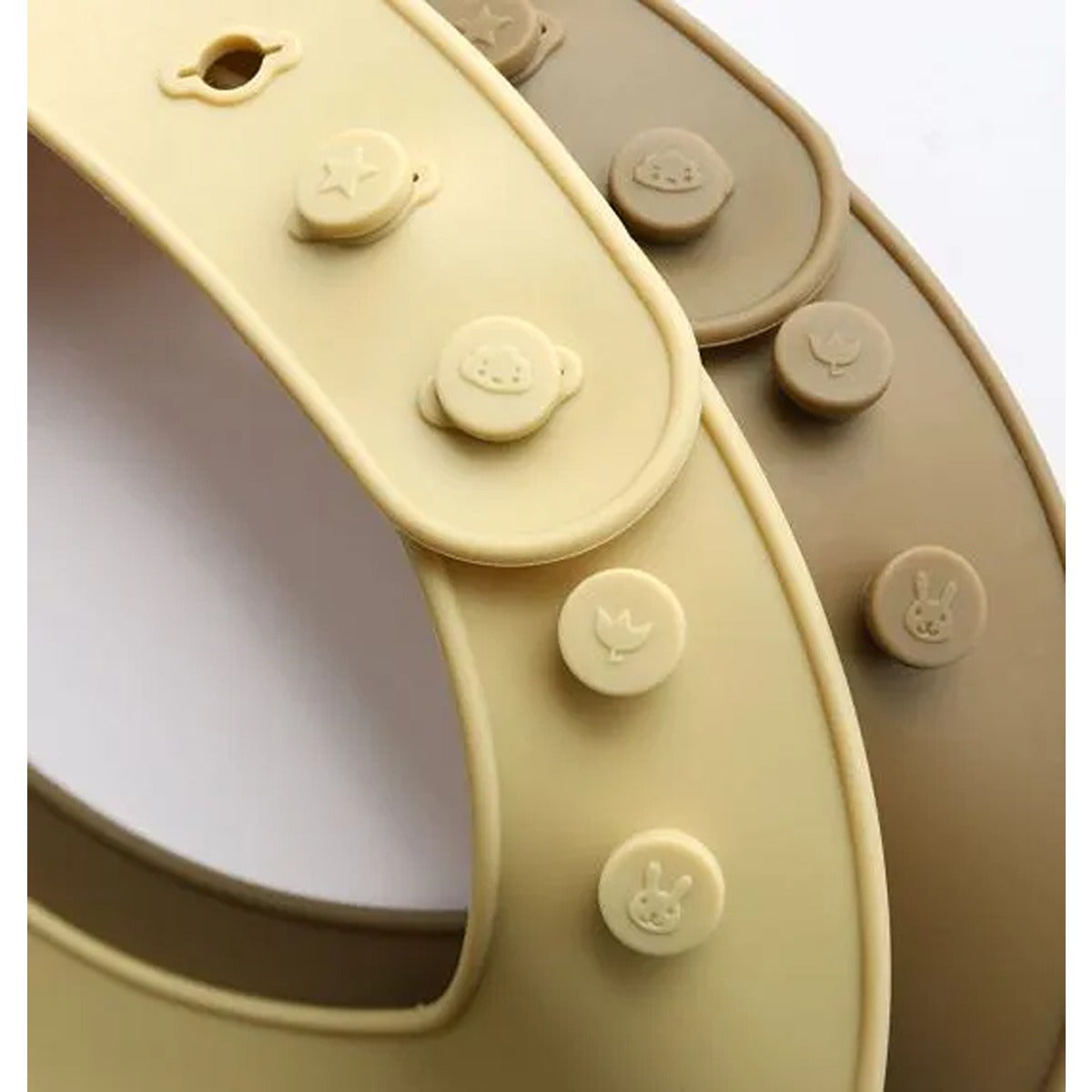 - Set of two lovely silicone bibs - one with print and one in a matching plain colour. Made from soft food-grade silicone, the bibs are waterproof, stain resistant and have a wide front pocket which is ideal for catching food. The adjustable neck fastener makes them suitable for infants and toddlers. They are easy to clean and easy to store, simply roll up the bib and tuck into its pocket!