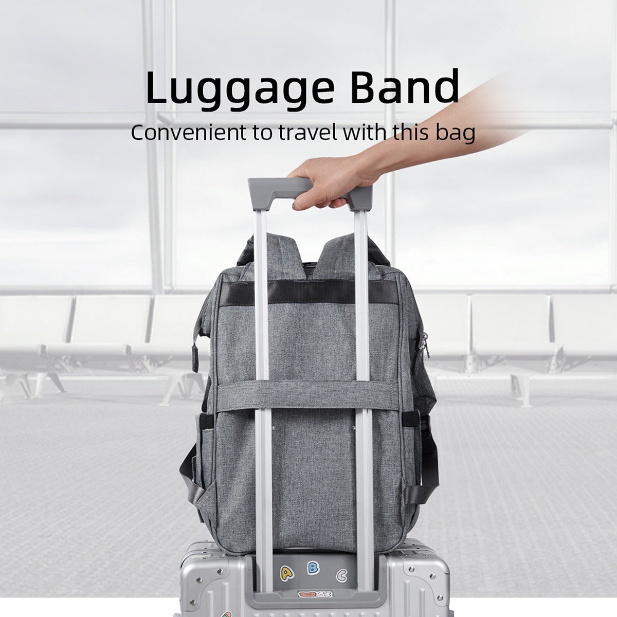 Sunveno Stylish Diaper Travel Backpack XL wt Stroller Straps & Changing Pad-Grey
