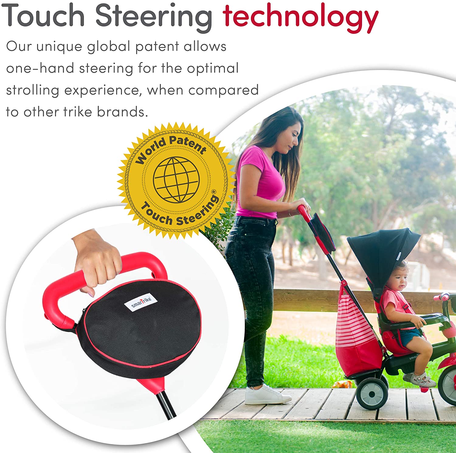 - No more forceful pushing and fighting with trikes! smarTrike is the only push trike with effortless touch steering; just touch the parent handle and the trike intuitively moves in the direction you want to go.