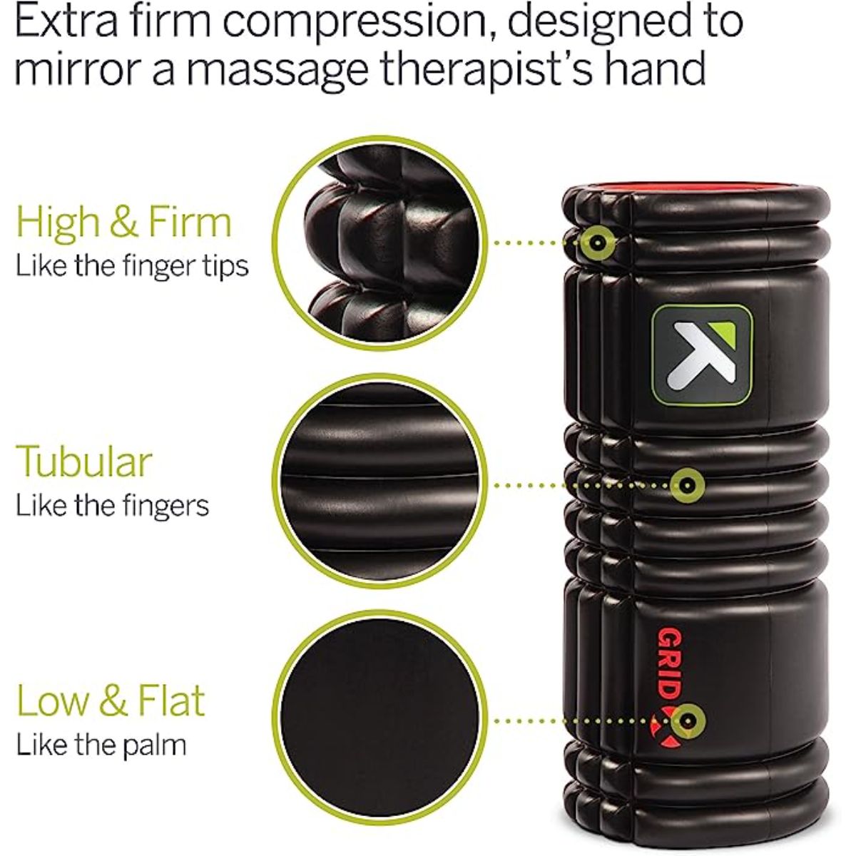 Trigger Point 'The Grid X' Foam Roller 'The Grid X' is Trigger Point's firmest foam roller, created to break through and soothe your body's toughest trouble spots and relieve intense aches and pains. Trigger Point's 'The Grid X' has been designed to target tight areas of your body and alleviate pain and tension, through stretching and rolling. 'The Grid X' is twice as firm as the original Grid Foam Roller, and testing has shown that it can support up to 550lbs/250kg. 'The Grid X' is sweat proof and simple to clean, meaning you can stretch out even the toughest aches in your body. Dense tissue needs a firmer GRID foam roller to release and relieve aches and pains. The GRID X can be used to release the calves, quadriceps, hamstrings, back and lats. Perfect for dense tissue or for individuals who prefer more intense compression.