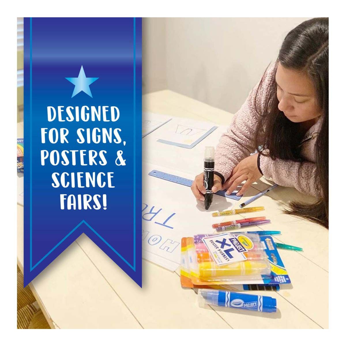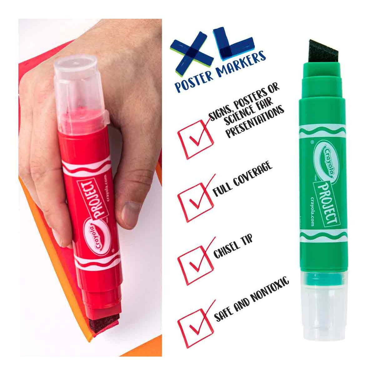 - CRAYOLA POSTER MARKERS: Features 4 XL Poster Markers with a 50% larger nib for posters, signs, decorations, and more.